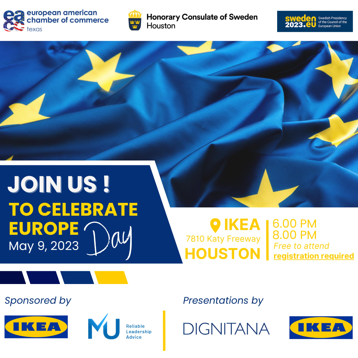 The European American Chamber of Commerce Texas and the Honorary Consulate of Sweden in Houston are delighted to invite you to celebrate